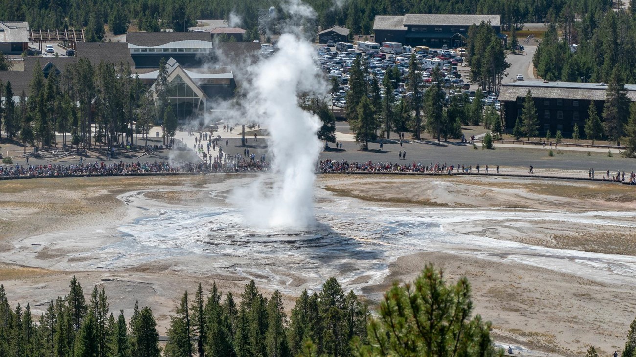 • Restrooms: Available at Old Faithful Visitor Center and nearby lodges
